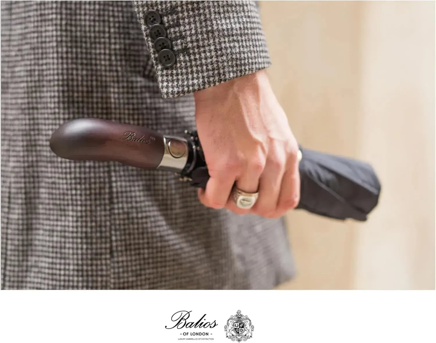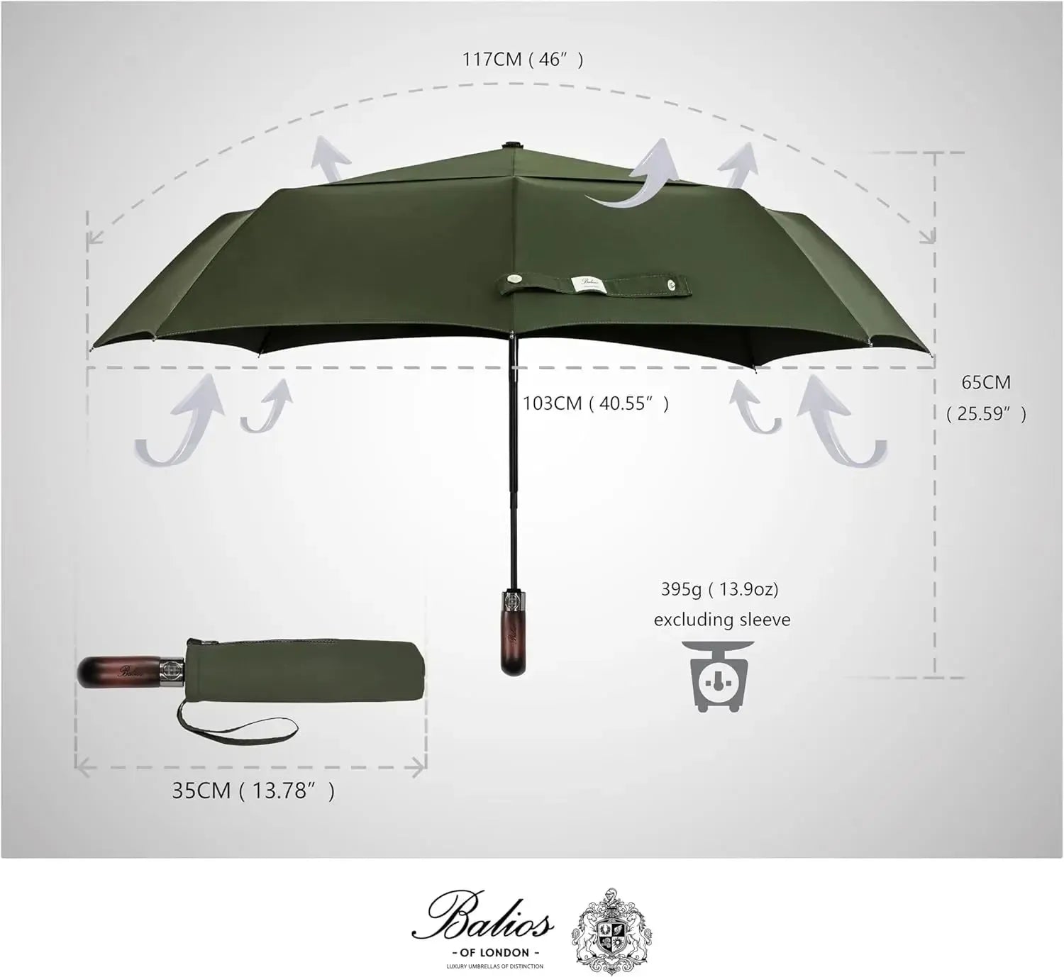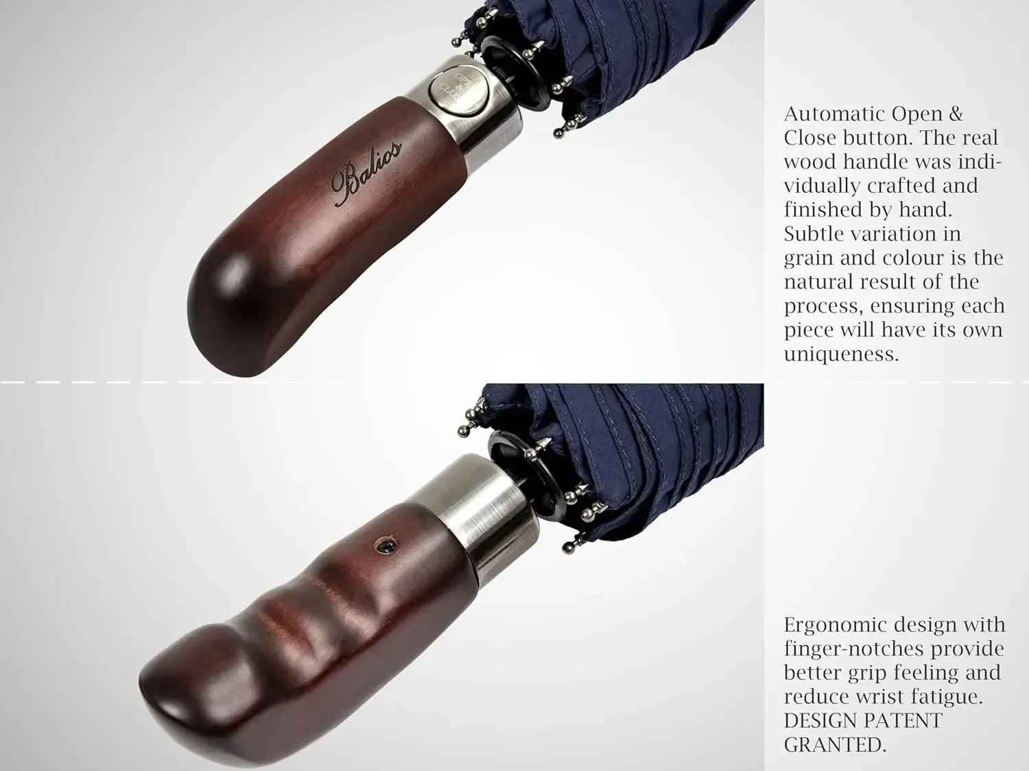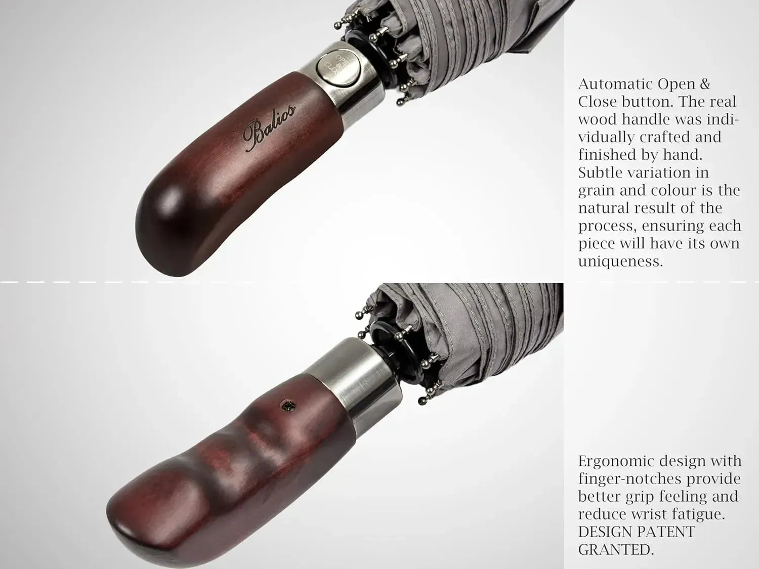Automatik Taschen-Regenschirm mit Holzgriff – sturmfest & windsicher – Herren & Damen – Designed in Britain