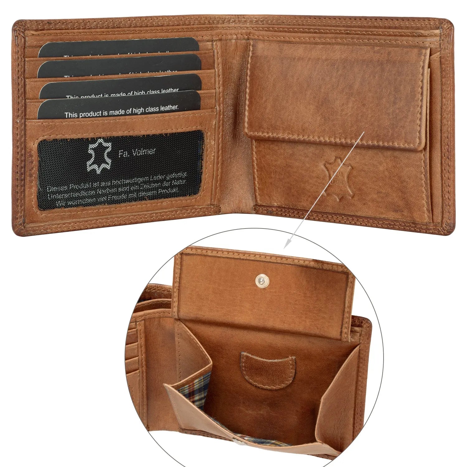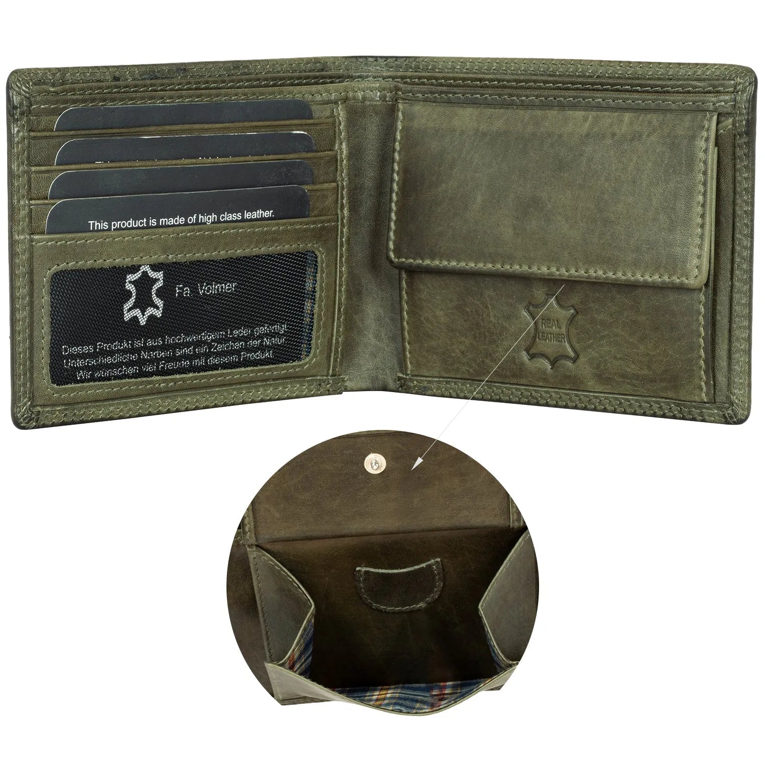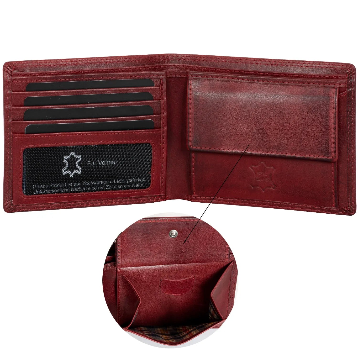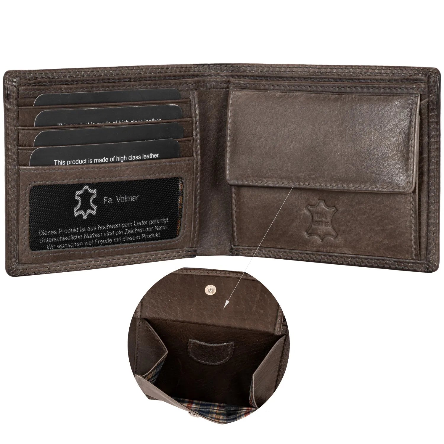 - 1 geräumiges Münzfach mit stabilem Druckknopf
