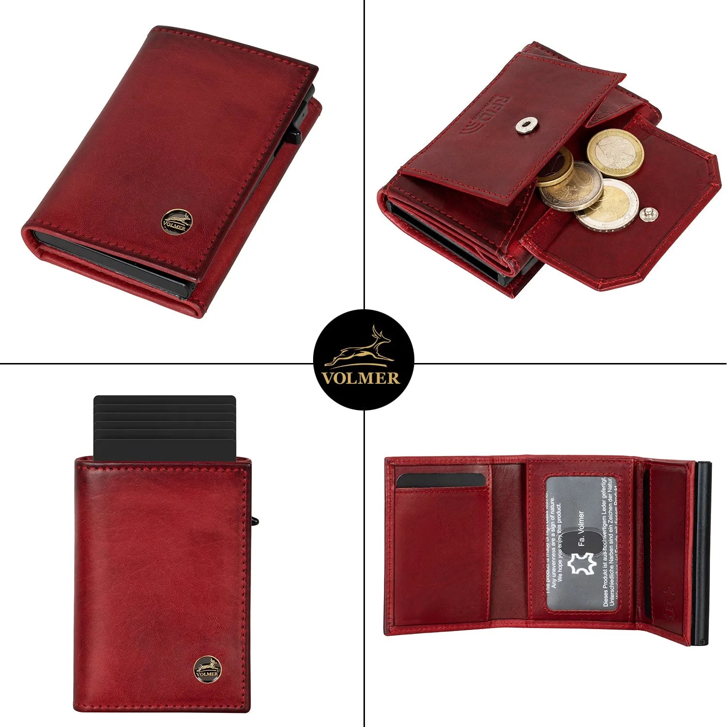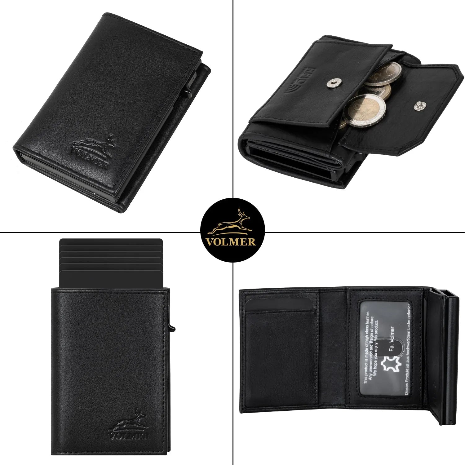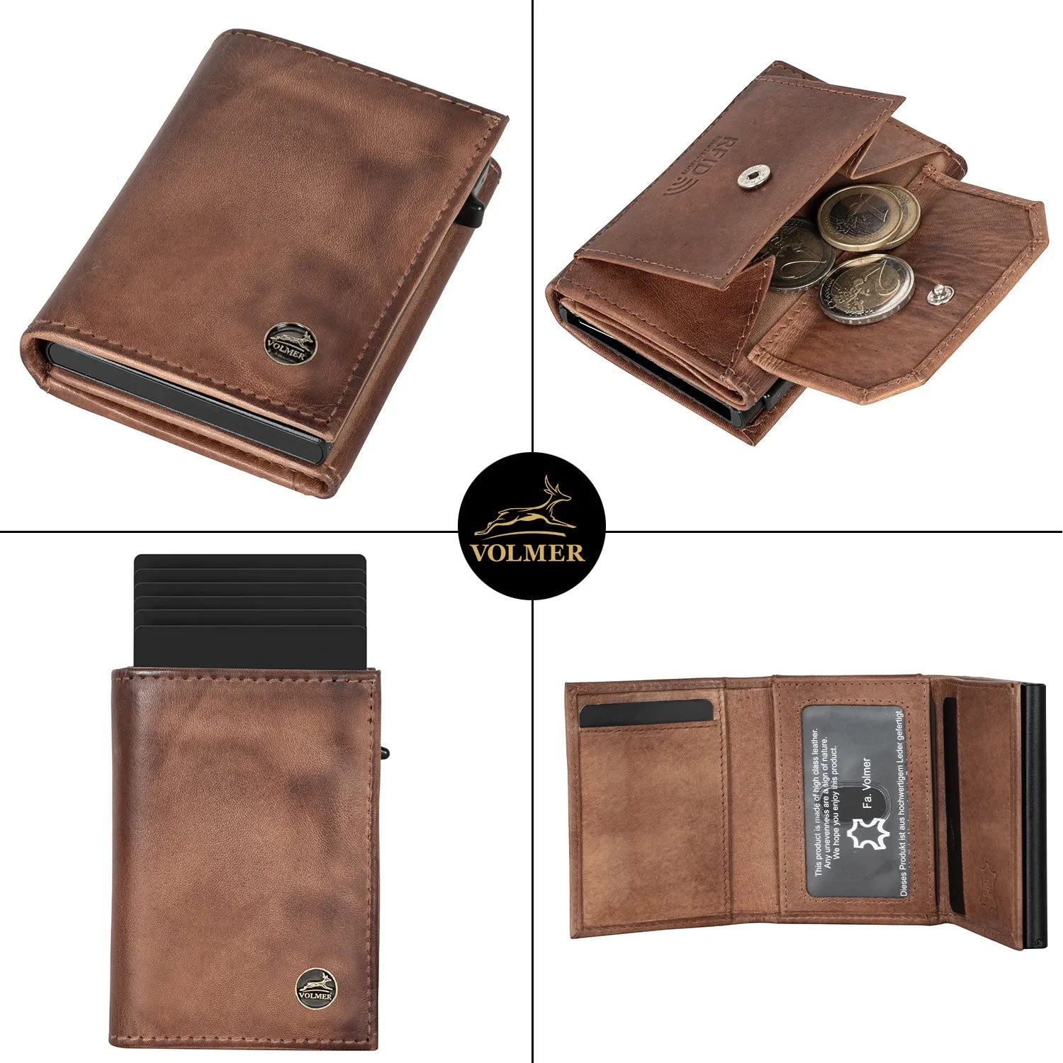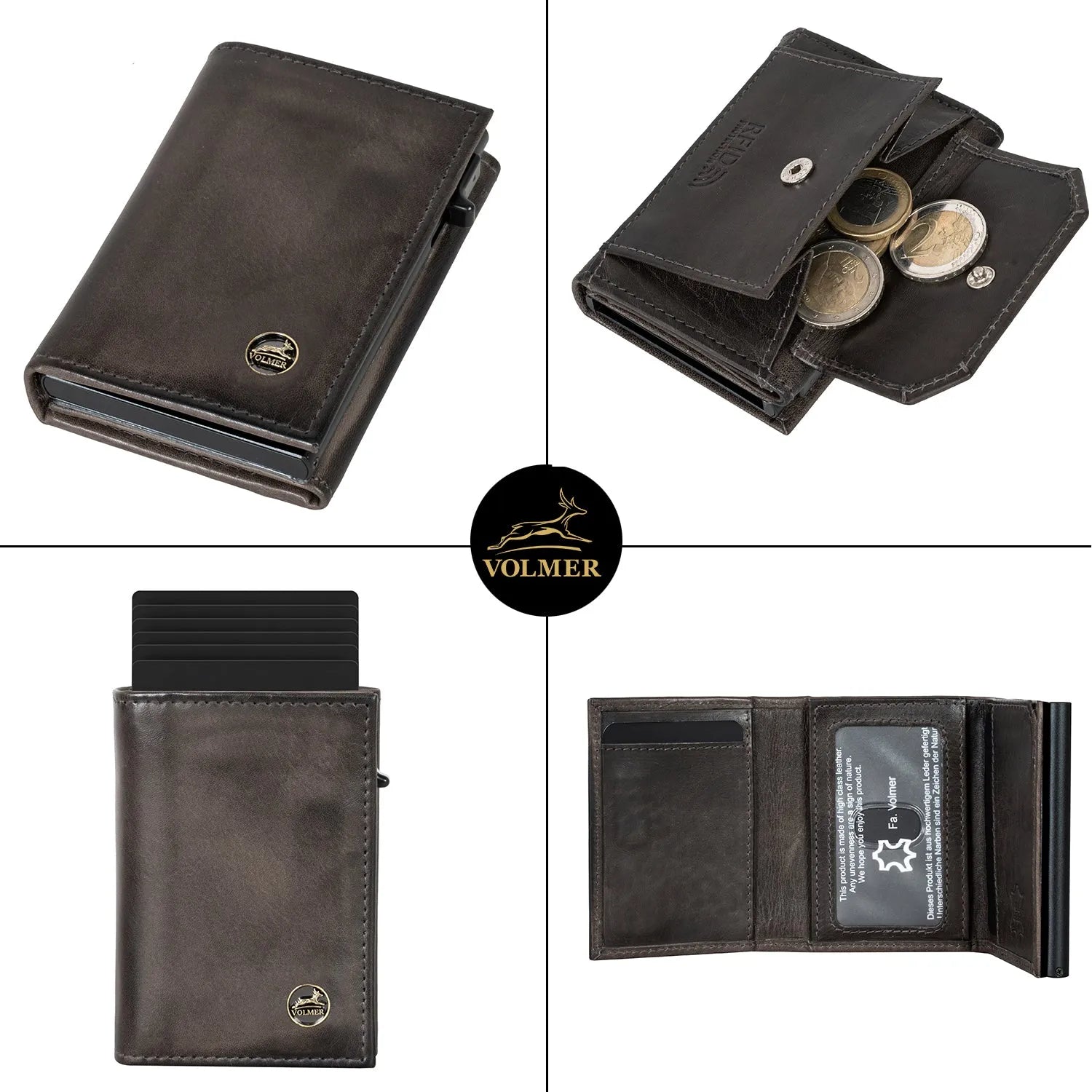 Fa.Volmer ® POP-UP Kartenetui mit Münzfach aus Echtleder für Herren & Damen | 11 Karten | RFID Schutz | Geldbörse