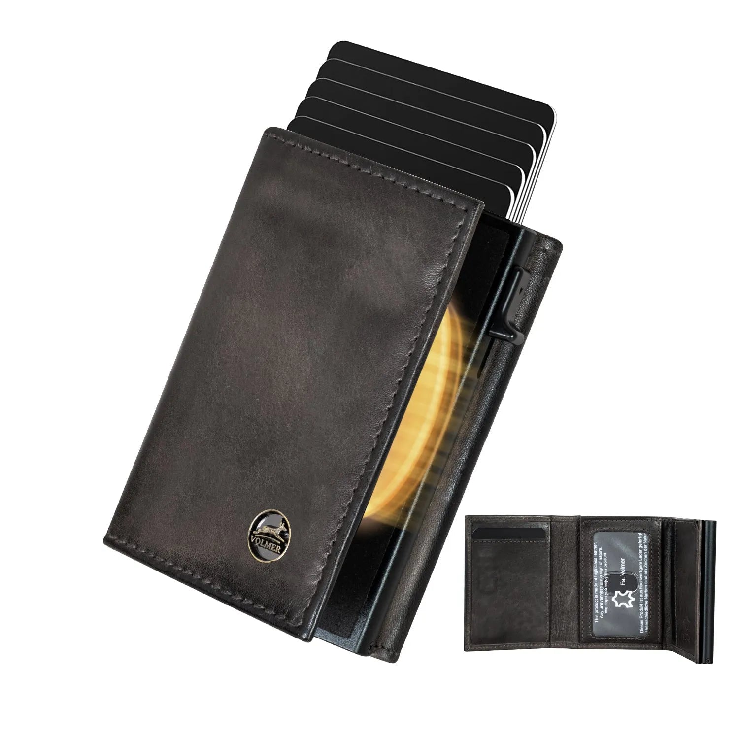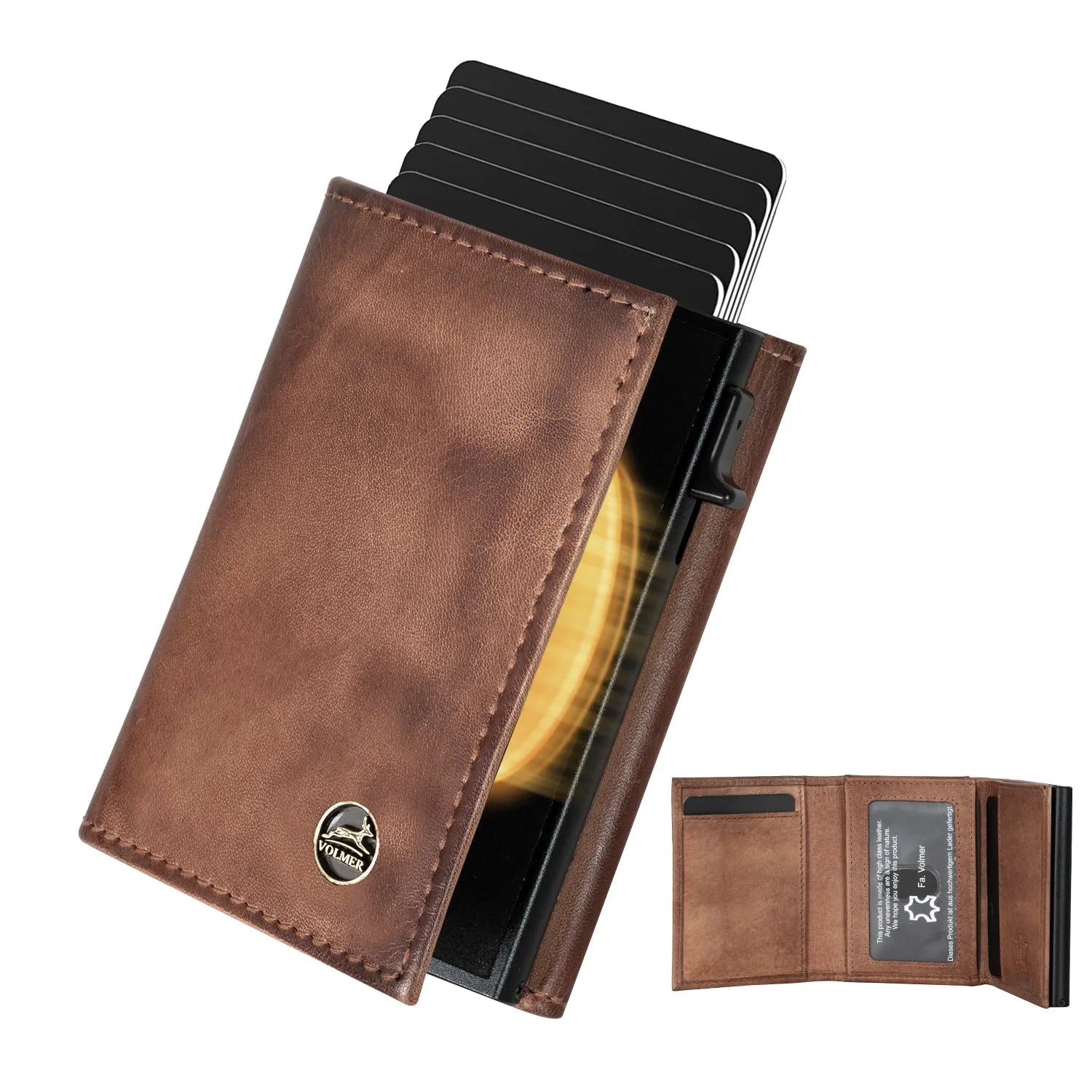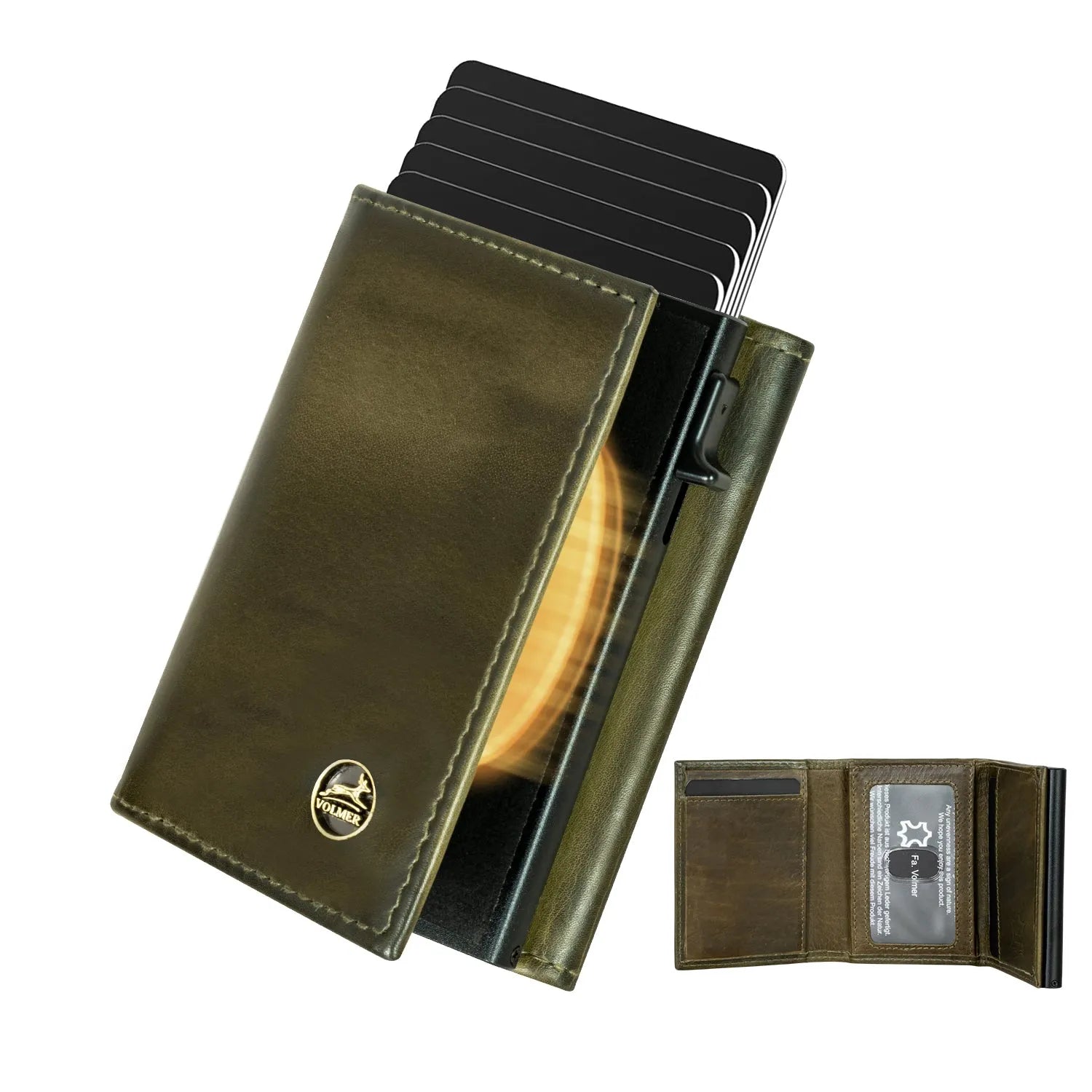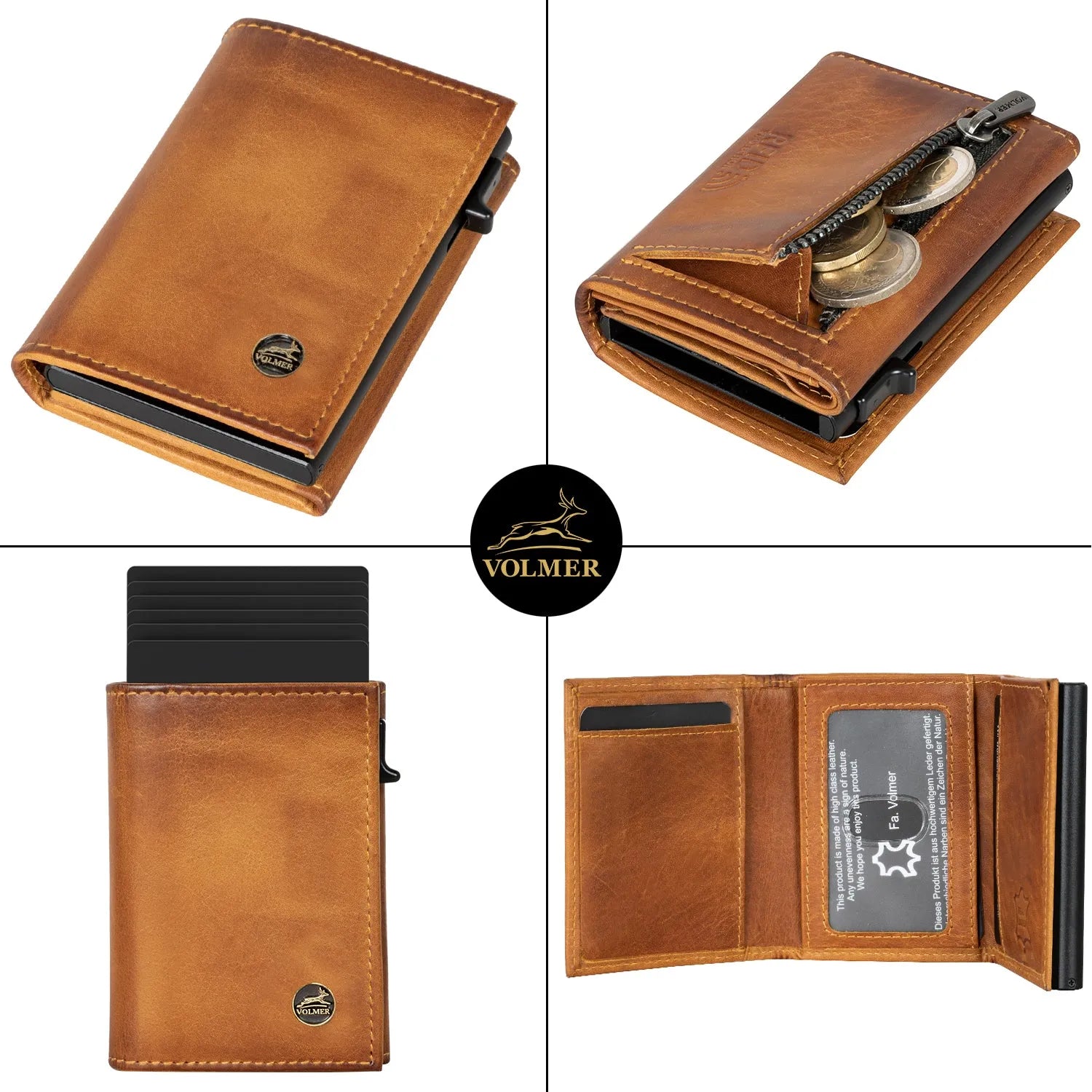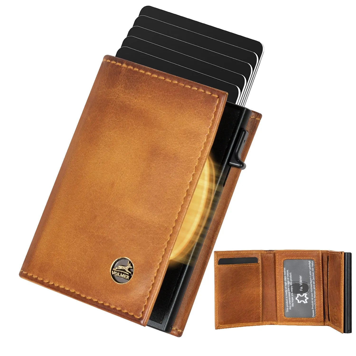 Fa.Volmer ® POP-UP Kartenetui mit Münzfach aus Echtleder für Herren & Damen | 11 Karten | RFID Schutz | Geldbörse