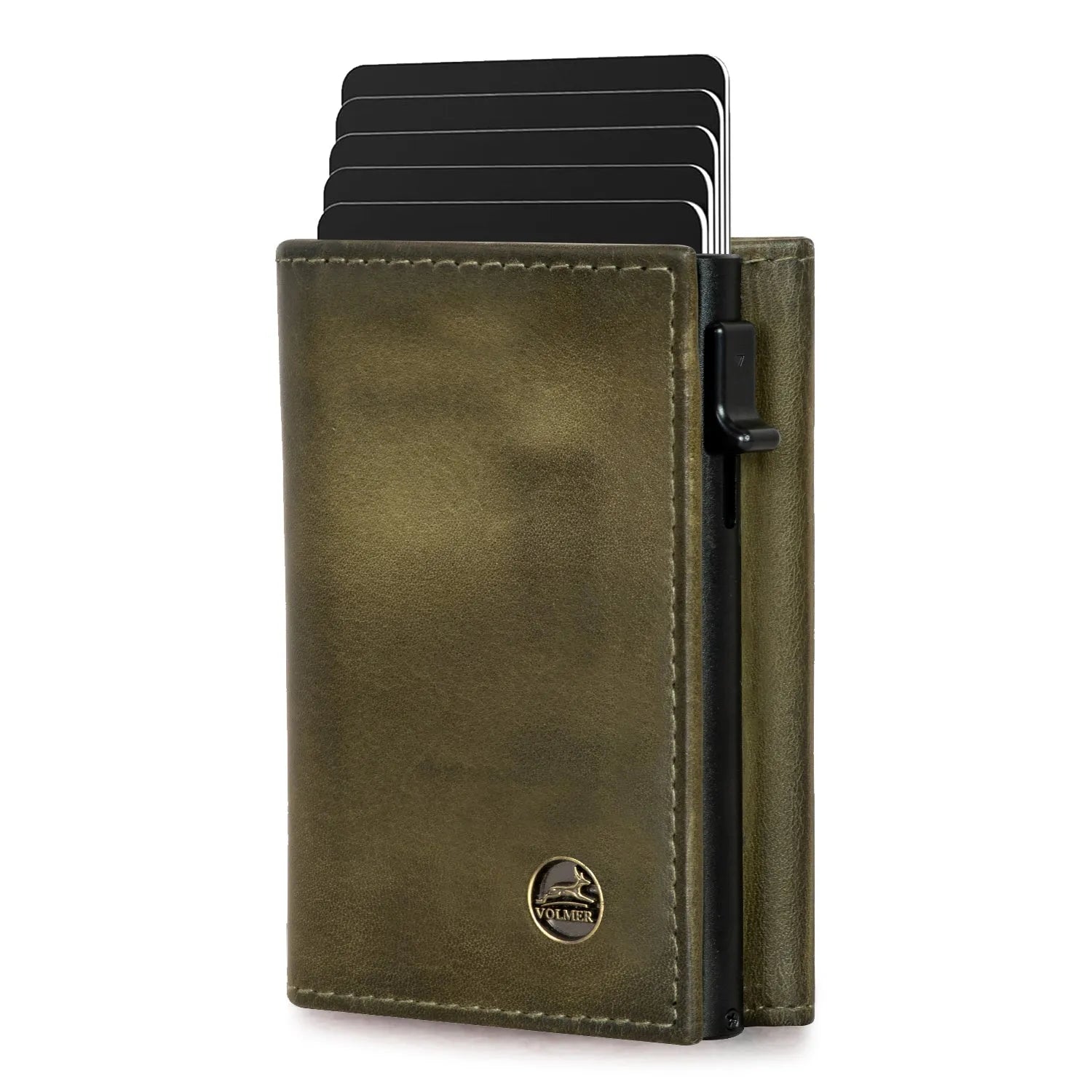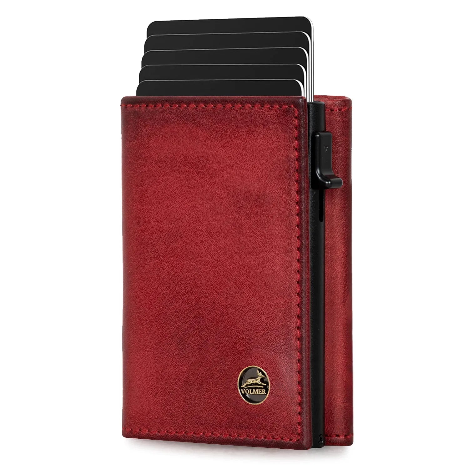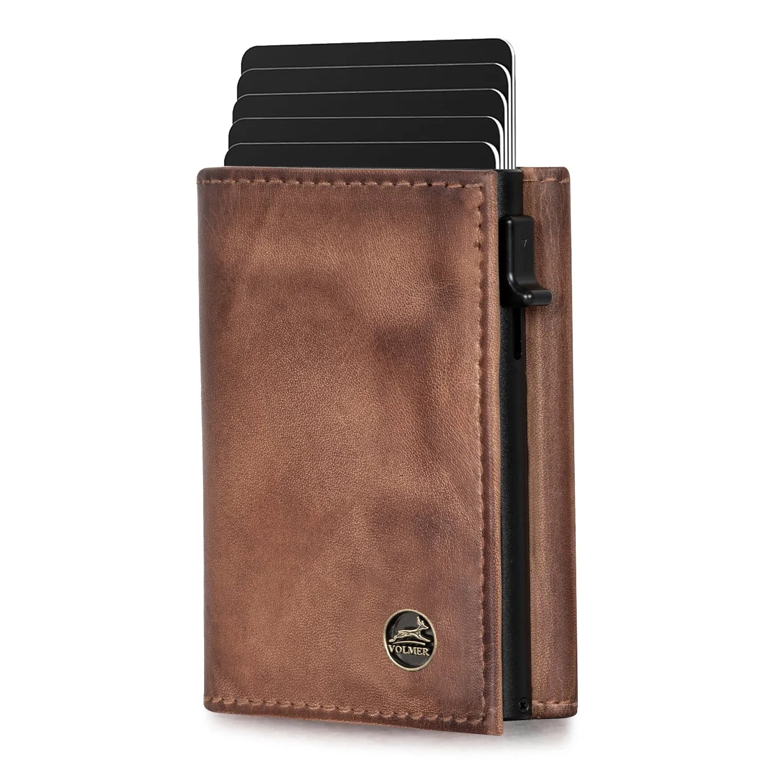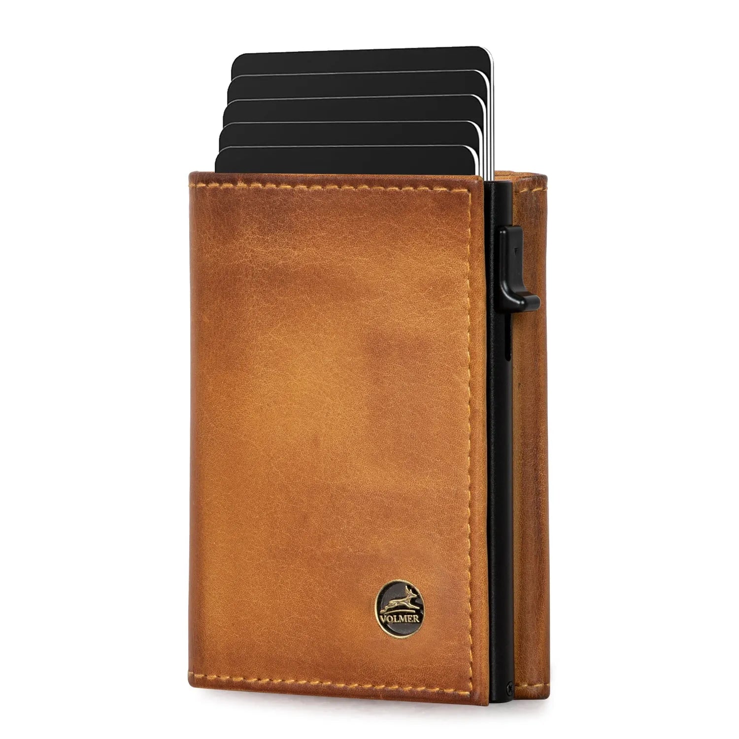 Fa.Volmer ® POP-UP Kartenetui mit Münzfach aus Echtleder für Herren & Damen | 11 Karten | RFID Schutz | Geldbörse