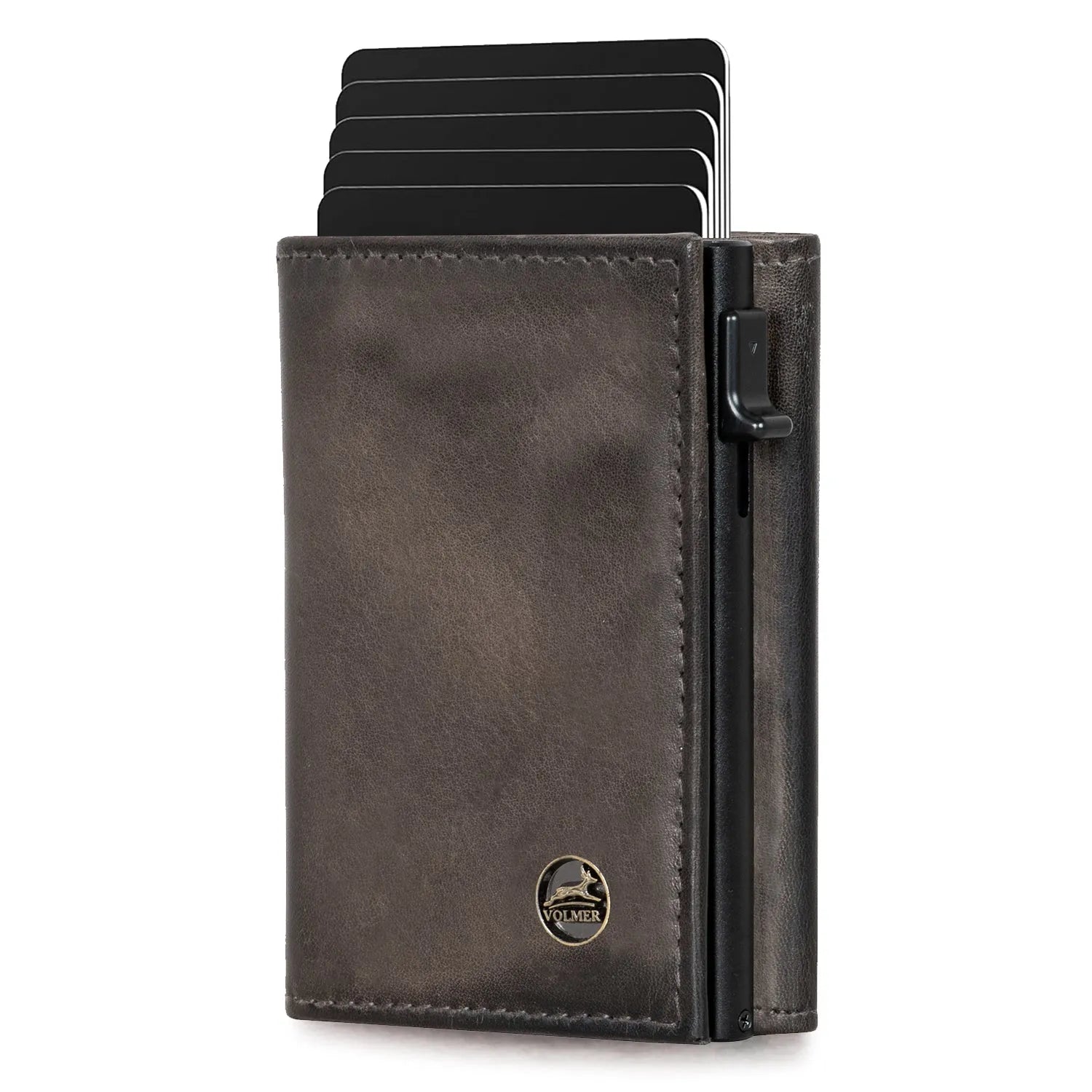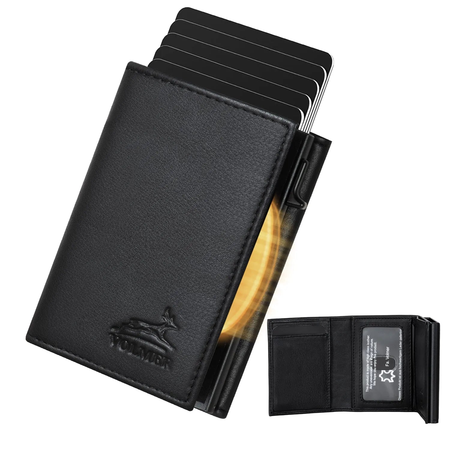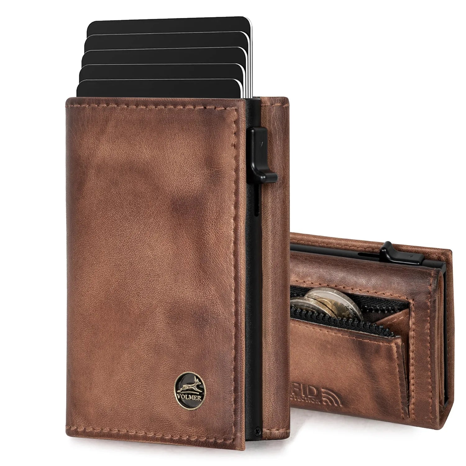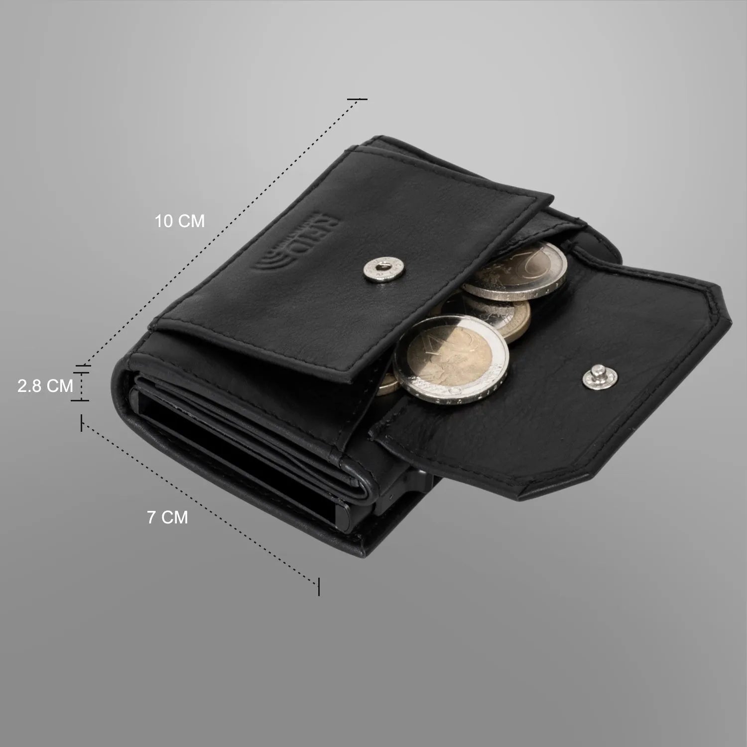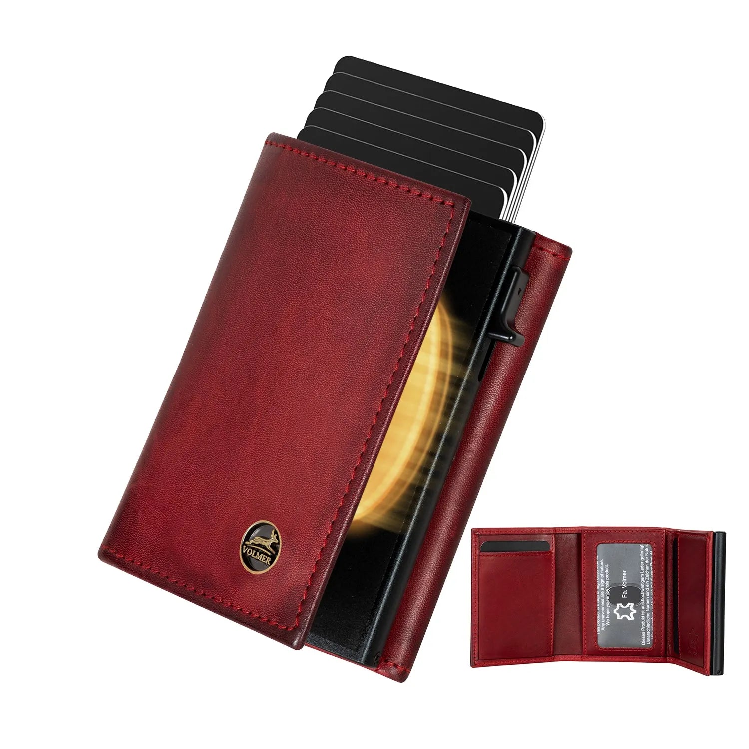 Fa.Volmer ® POP-UP Kartenetui mit Münzfach aus Echtleder für Herren & Damen | 11 Karten | RFID Schutz | Geldbörse