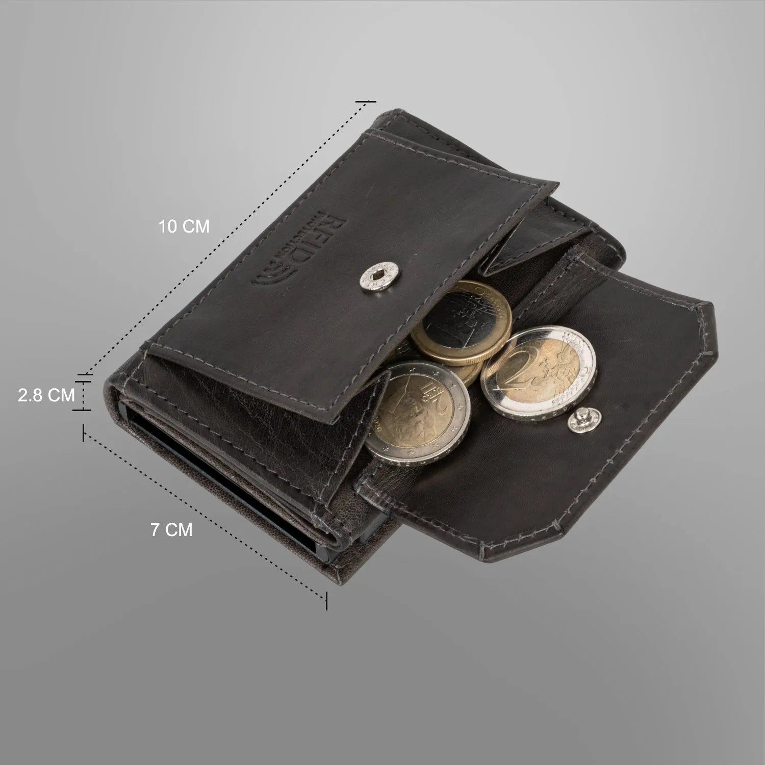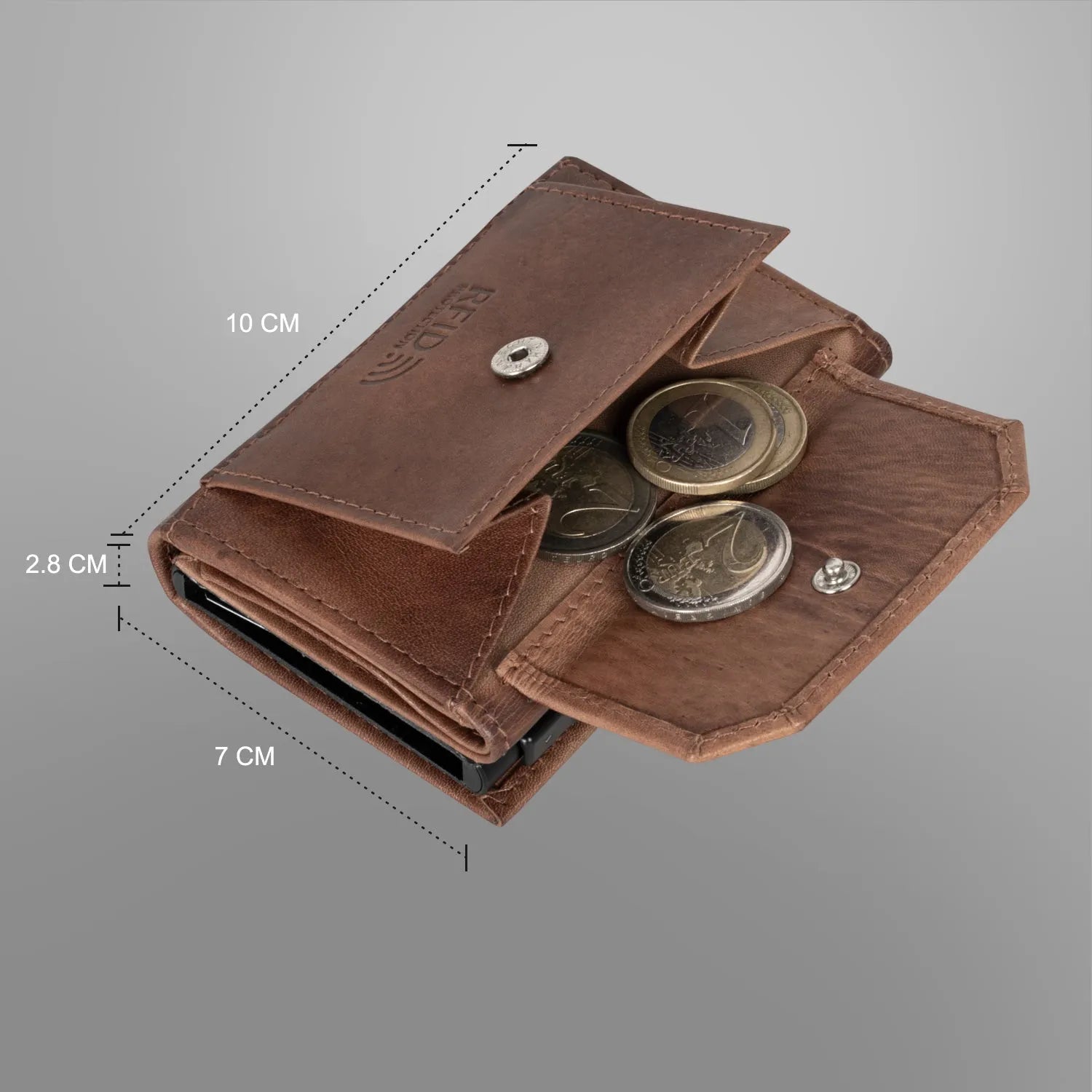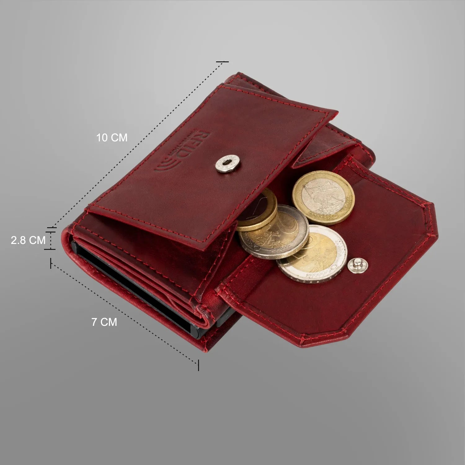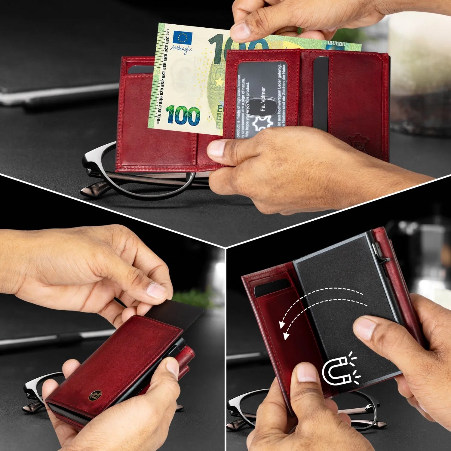 Fa.Volmer ® POP-UP Kartenetui mit Münzfach aus Echtleder für Herren & Damen | 11 Karten | RFID Schutz | Geldbörse