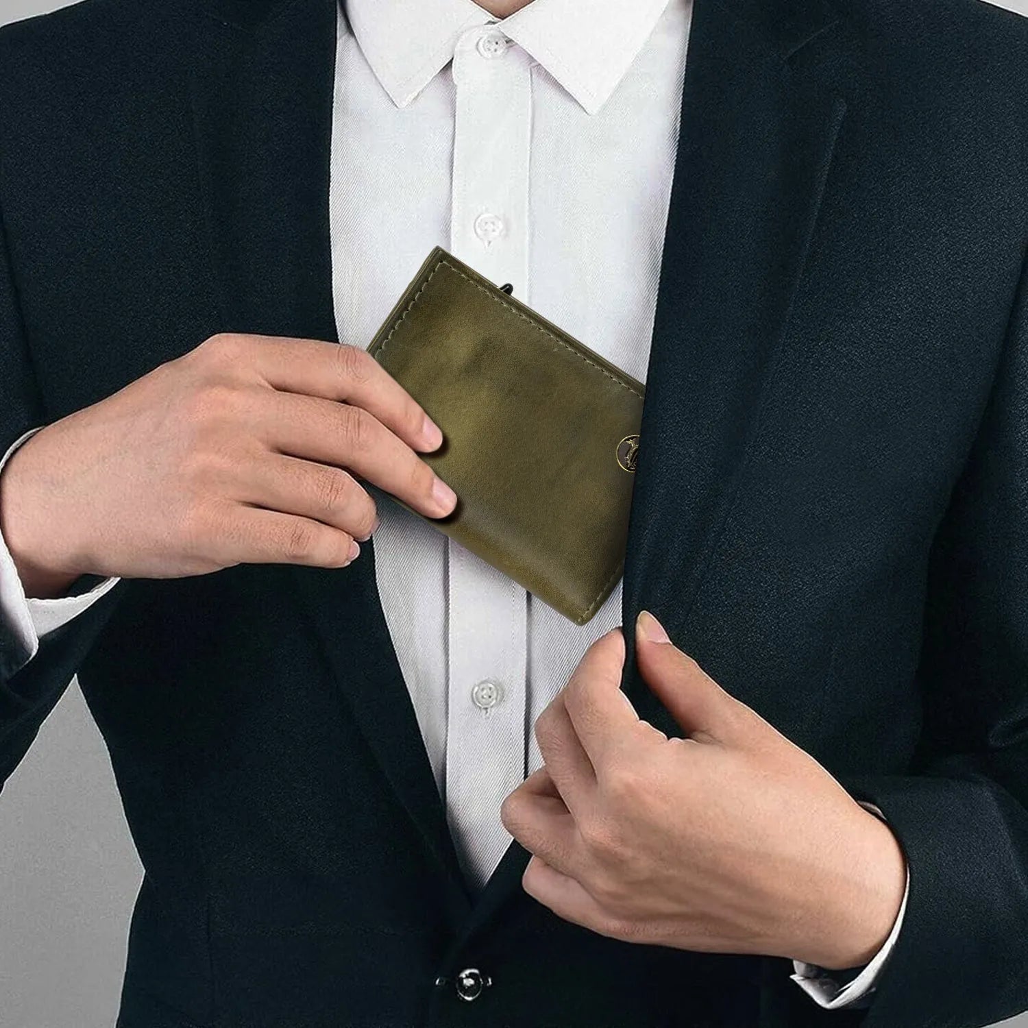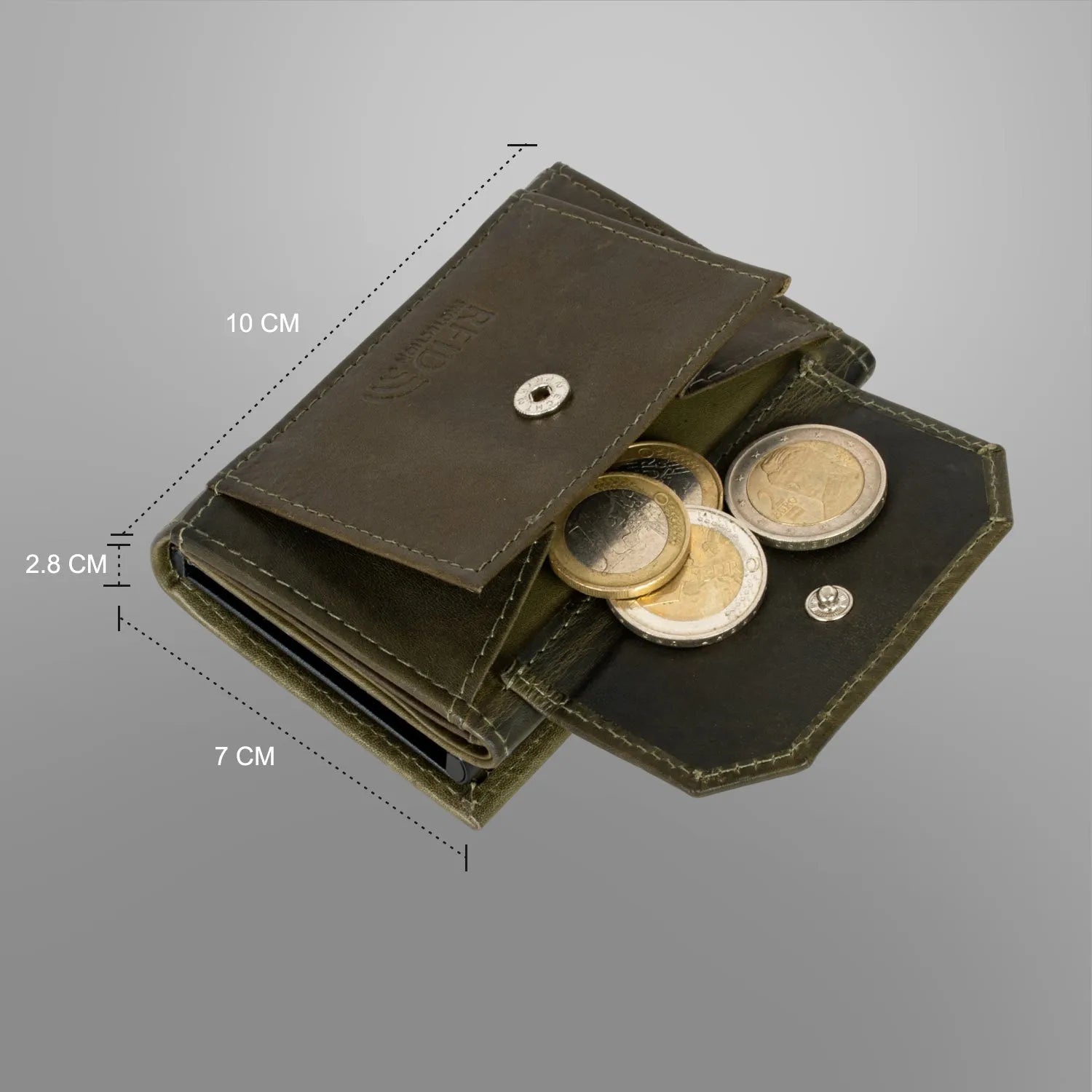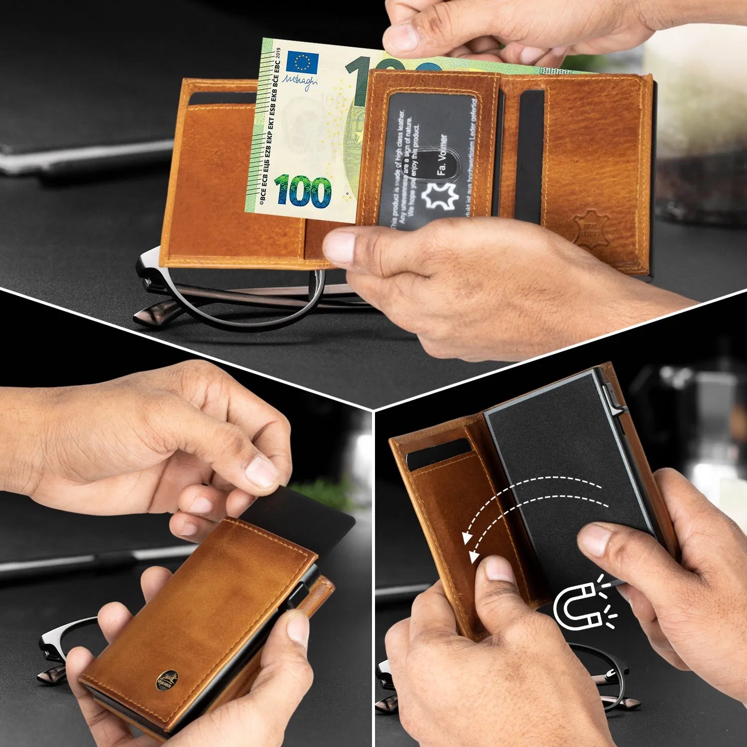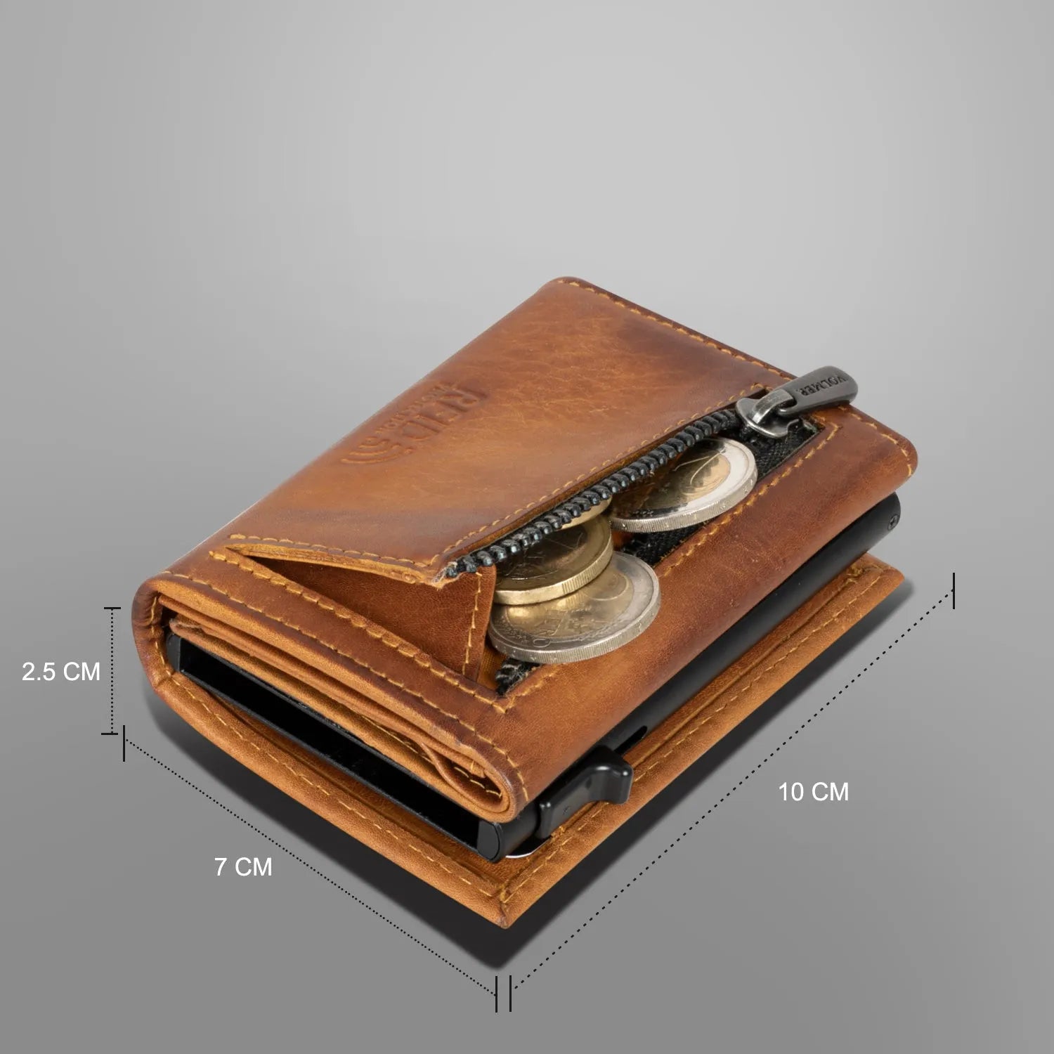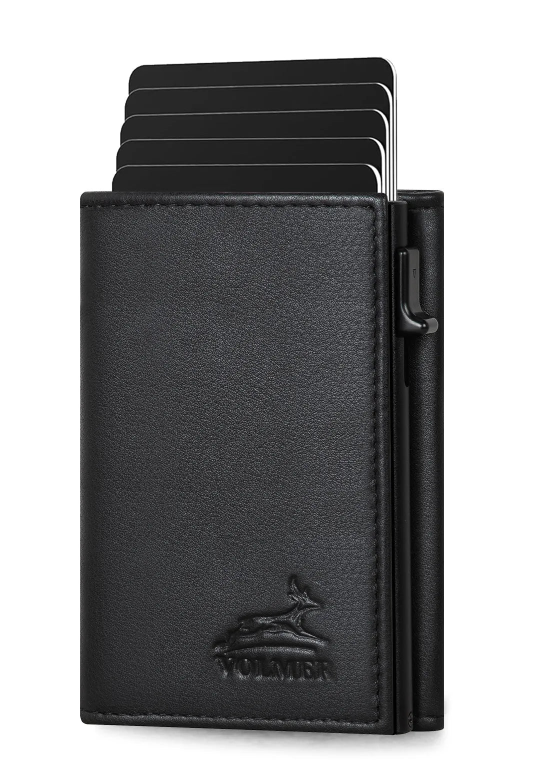 Fa.Volmer ® POP-UP Kartenetui mit Münzfach aus Echtleder für Herren & Damen | 11 Karten | RFID Schutz | Geldbörse